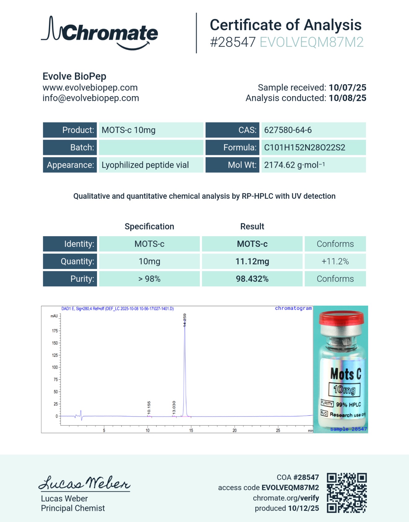 Mots-C Mitochondrial Signaling Research Peptide 10mg
